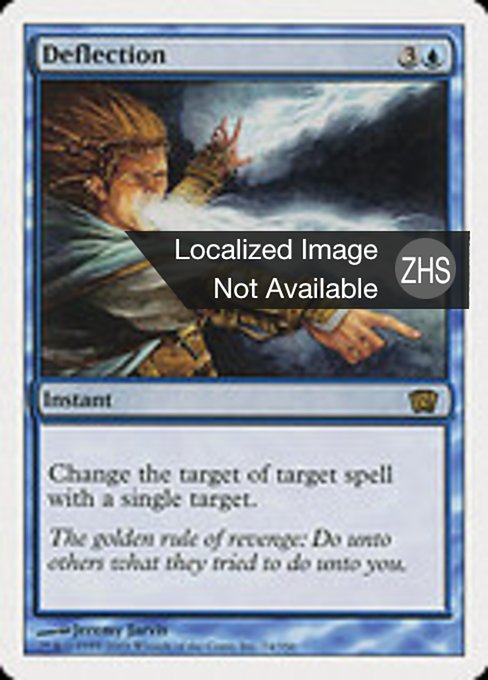 You can choose to make a spell on the stack target this spell (if such a target choice would be legal had the spell been cast while this spell was on the stack). The new target for the deflected spell is not chosen until this spell resolves. This spell is still on the stack when new targets are selected for the spell.