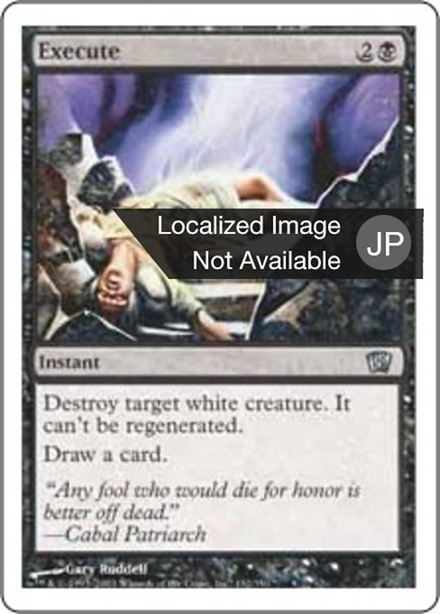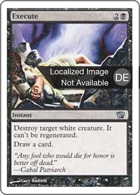 |  Variations— Parts— | ExecuteDestroy target white creature. It can't be regenerated. Draw a card.