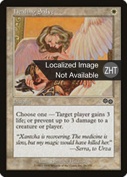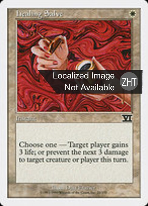 |  Variations— Parts— | Healing SalveChoose one — • Target player gains 3 life. • Prevent the next 3 damage that would be dealt to any target this turn.
