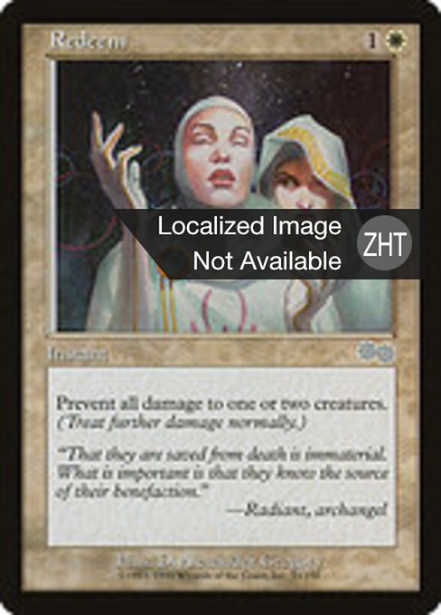 |  Variations— Parts— | RedeemPrevent all damage that would be dealt this turn to up to two target creatures.
