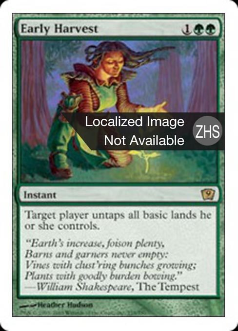 ![]() Variations : 1Parts— | Early HarvestTarget player untaps all basic lands they control.