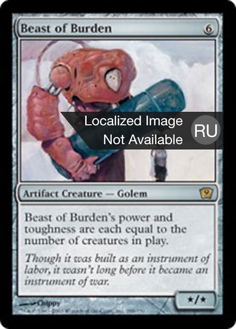 ![]() Variations : 1Parts— | Beast of Burden* / * Beast of Burden's power and toughness are each equal to the number of creatures on the battlefield.