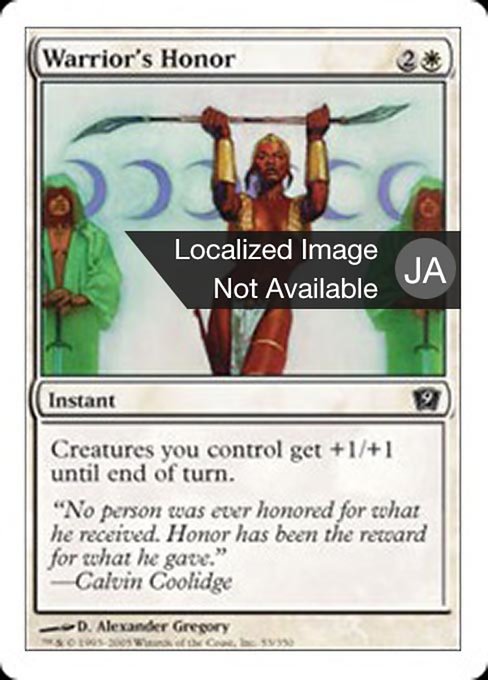![]() Variations : 1Parts— | Warrior's HonorCreatures you control get +1/+1 until end of turn.