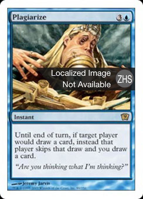 ![]() Variations : 1Parts— | PlagiarizeUntil end of turn, if target player would draw a card, instead that player skips that draw and you draw a card.