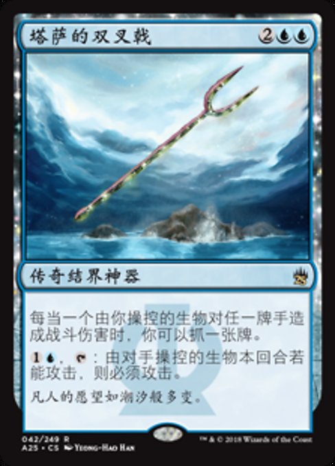 |  Variations— Parts— | Bident of ThassaWhenever a creature you control deals combat damage to a player, you may draw a card.