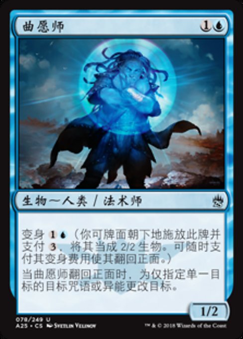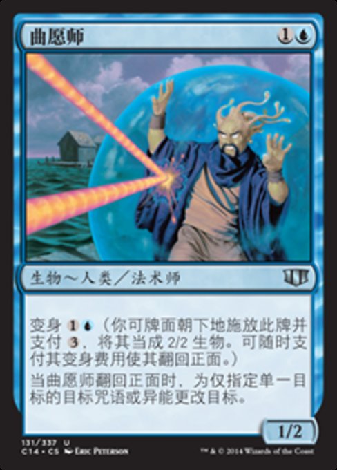 ![]() Variations— Parts— | 曲愿师1 / 2 变身 当曲愿师翻回正面时,为仅指定单一目标的目标咒语或异能更改目标。