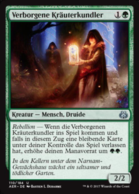 ![]() Variations— Parts— | Hidden Herbalists2 / 2 Revolt — When this creature enters, if a permanent left the battlefield under your control this turn, add