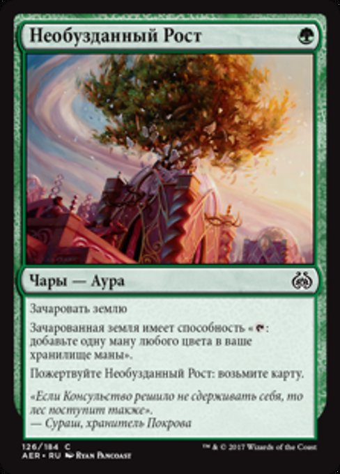 |  Variations— Parts— | Unbridled GrowthEnchant land Enchanted land has " Sacrifice this Aura: Draw a card.