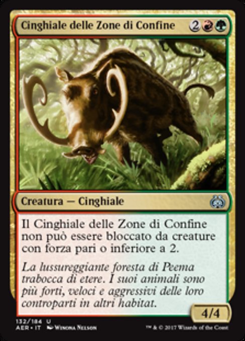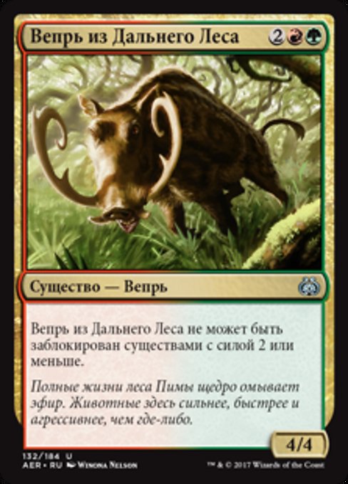 ![]() Variations— Parts— | Outland Boar4 / 4 This creature can't be blocked by creatures with power 2 or less.
