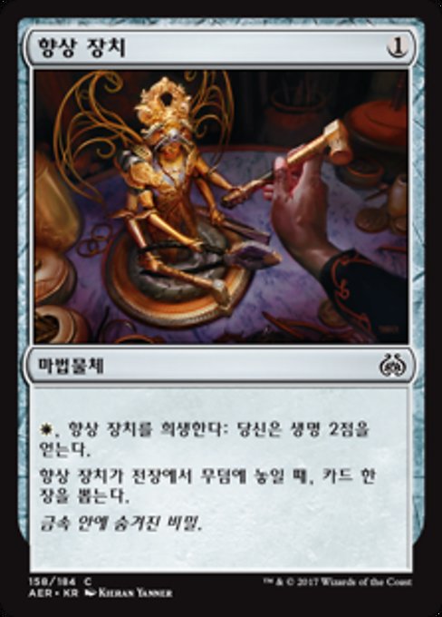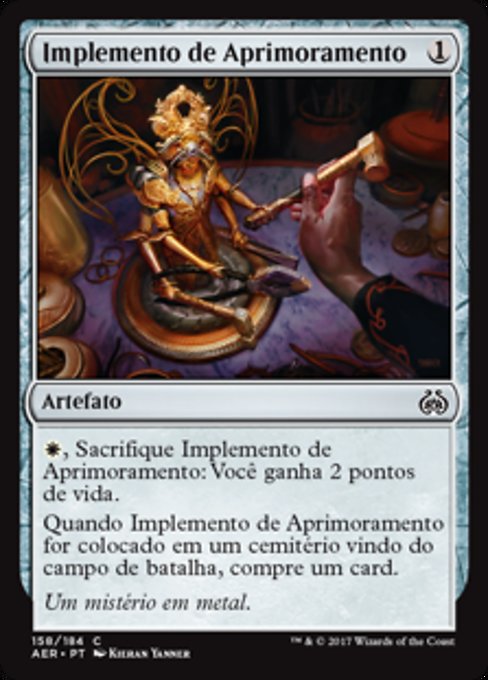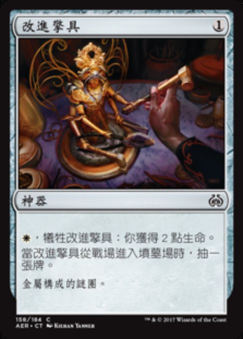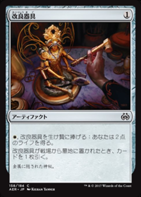 ![]() Variations— Parts— | Implement of ImprovementWhen this artifact is put into a graveyard from the battlefield, draw a card.