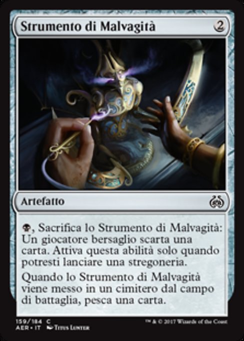 |  Variations— Parts— | Implement of MaliceWhen this artifact is put into a graveyard from the battlefield, draw a card.