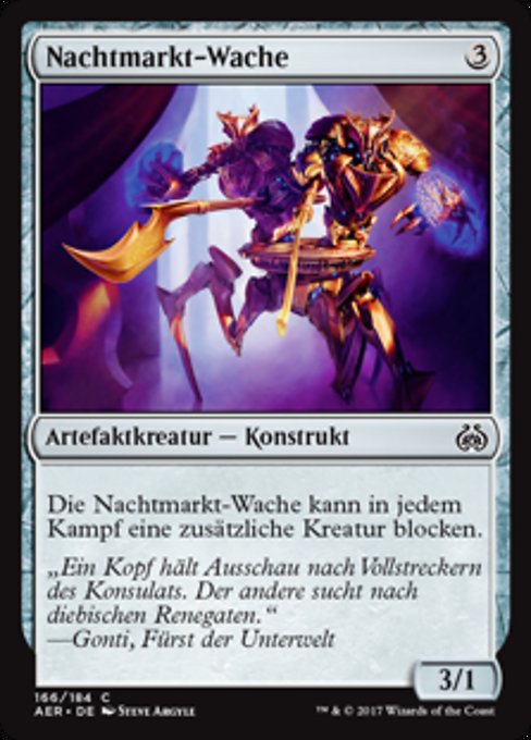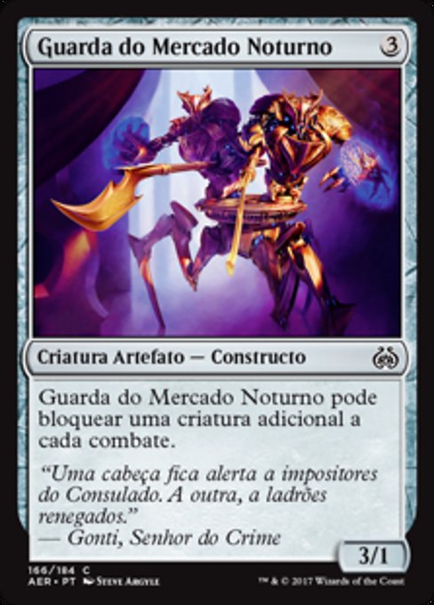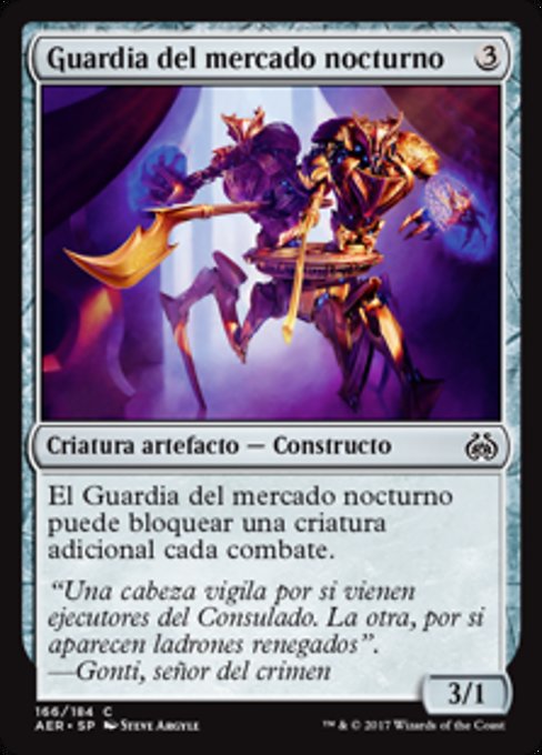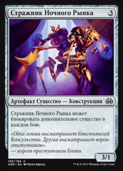 |  Variations— Parts— | Night Market Guard3 / 1 This creature can block an additional creature each combat.