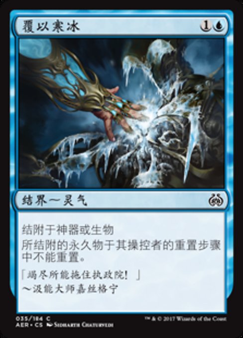 |  Variations— Parts— | Ice OverEnchant artifact or creature Enchanted permanent doesn't untap during its controller's untap step.