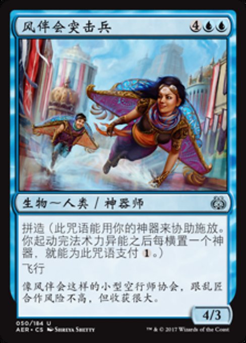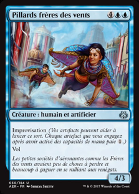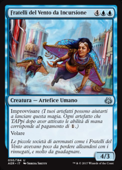 |  Variations— Parts— | Wind-Kin Raiders4 / 3 Improvise (Your artifacts can help cast this spell. Each artifact you tap after you're done activating mana abilities pays for  Flying
