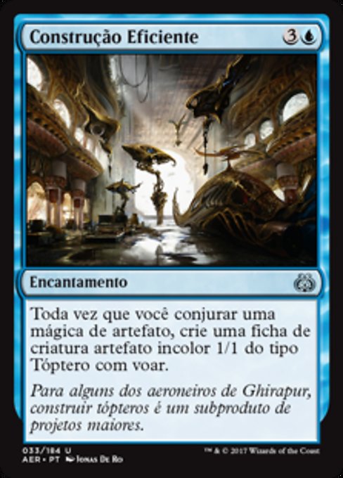 ![]() Variations— Parts— | Construcción eficienteSiempre que lances un hechizo de artefacto, crea una ficha de criatura artefacto Tóptero incolora 1/1 con la habilidad de volar.
