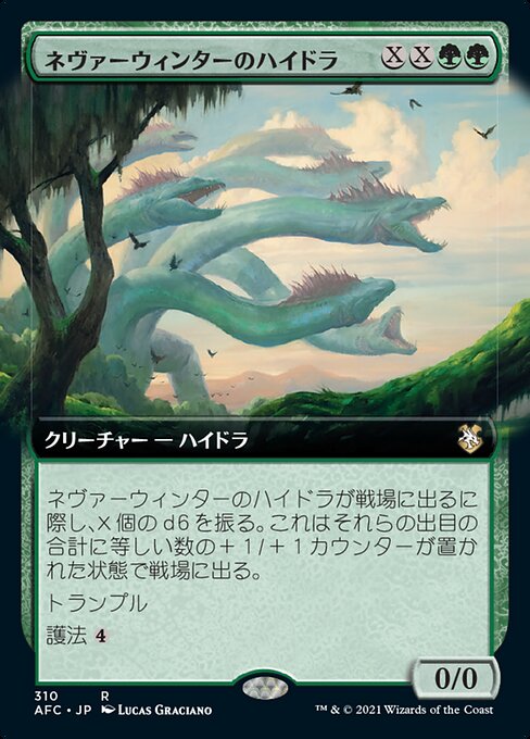 |  Variations : 1Parts— | Neverwinter Hydra0 / 0 As this creature enters, roll X d6. It enters with a number of +1/+1 counters on it equal to the total of those results. Trample Ward