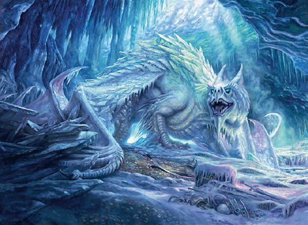 Cuando Muerte de Hielo, tirano de escarcha muera, crea a Muerte de Hielo, lengua de escarcha, una ficha de artefacto legendaria Equipo blanca con "La criatura equipada obtiene +2/+0", "Siempre que la criatura equipada ataque, gira la criatura objetivo que controla el jugador defensor" y la habilidad de equipar