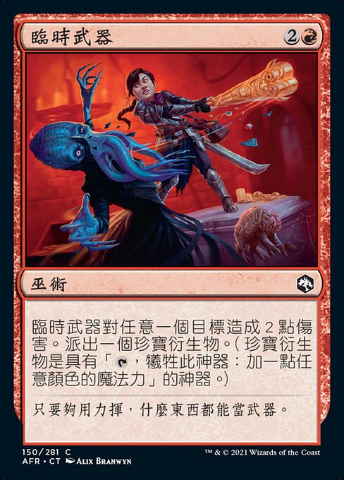![]() Variations— Parts— | Armi ImprovvisateLe Armi Improvvisate infliggono 2 danni a un qualsiasi bersaglio. Crea una pedina Tesoro. (È un artefatto con "