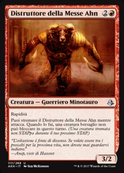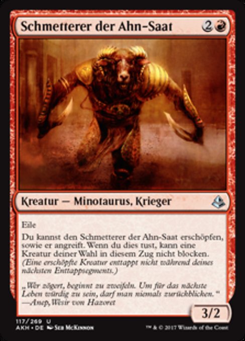 ![]() Variations— Parts— | Ahn-Crop Crasher3 / 2 Haste (This creature can attack and You may exert this creature as it attacks. When you do, target creature can't block this turn. (An exerted creature won't untap during your next untap step.)