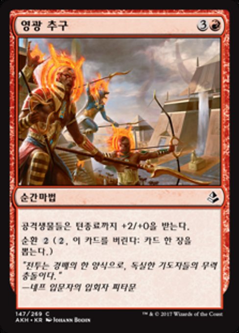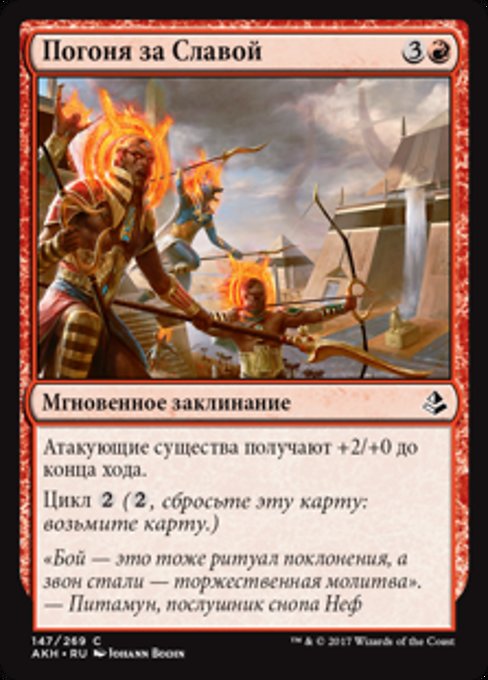 ![]() Variations— Parts— | Pursue GloryAttacking creatures get +2/+0 until end of turn. Cycling