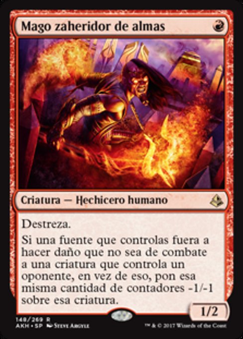 ![]() Variations— Parts— | Soul-Scar Mage1 / 2 Prowess If a source you control would deal noncombat damage to a creature an opponent controls, put that many -1/-1 counters on that creature instead.