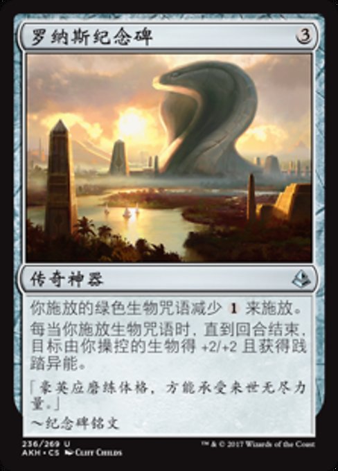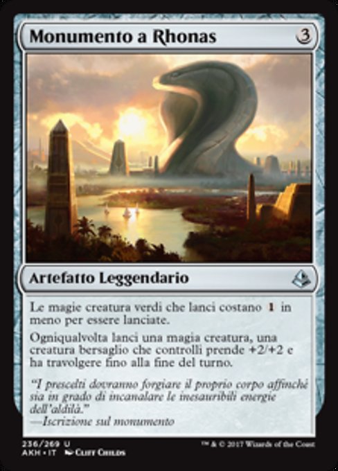 ![]() Variations— Parts— | Rhonas's MonumentGreen creature spells you cast cost Whenever you cast a creature spell, target creature you control gets +2/+2 and gains trample until end of turn.