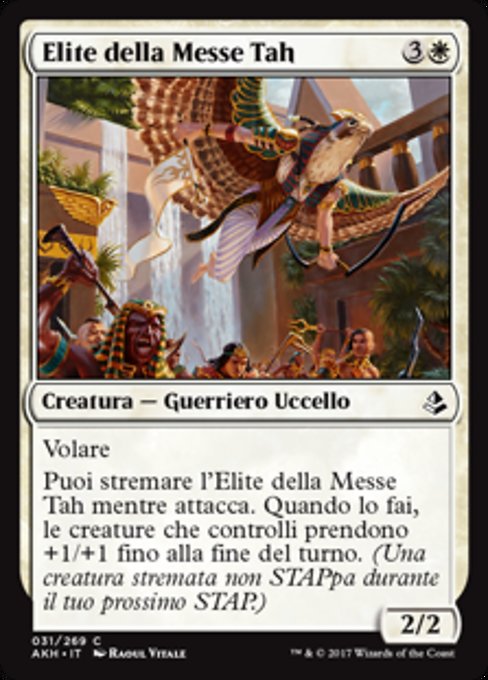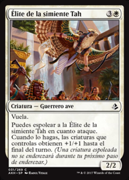 ![]() Variations— Parts— | Tah-Crop Elite2 / 2 Flying You may exert this creature as it attacks. When you do, creatures you control get +1/+1 until end of turn. (An exerted creature won't untap during your next untap step.)