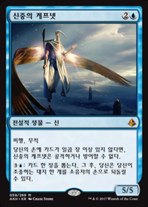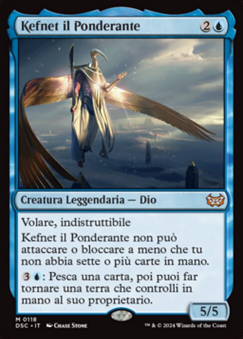 |  Variations— Parts— | Kefnet il Ponderante5 / 5 Volare, indistruttibile Kefnet il Ponderante non può attaccare o bloccare a meno che tu non abbia sette o più carte in mano.