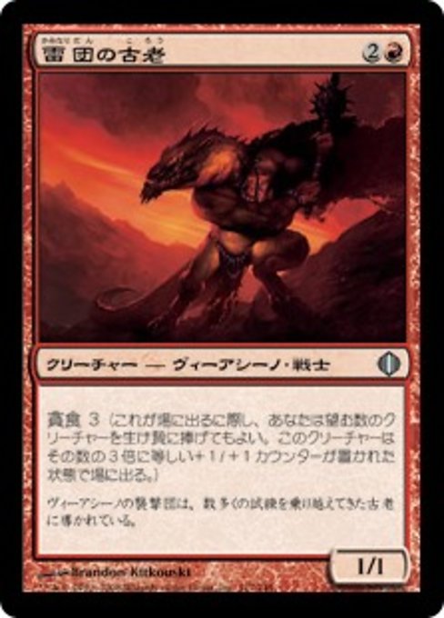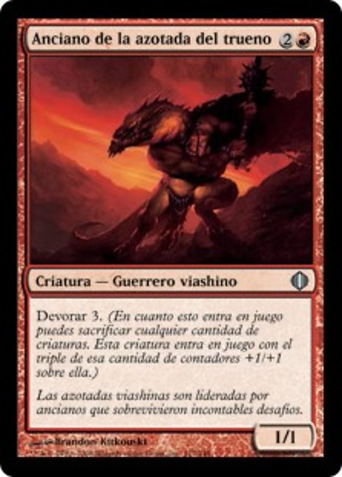 ![]() Variations— Parts— | Thunder-Thrash Elder1 / 1 Devour 3 (As this creature enters, you may sacrifice any number of creatures. It enters with three times that many +1/+1 counters on it.)