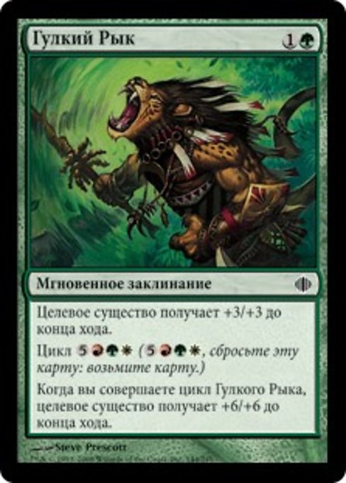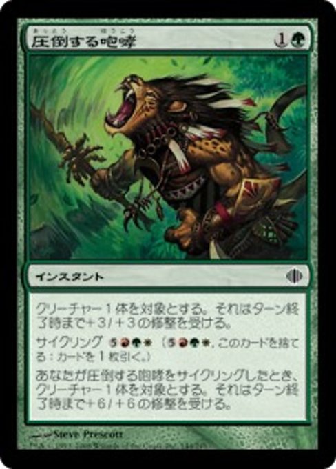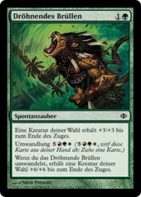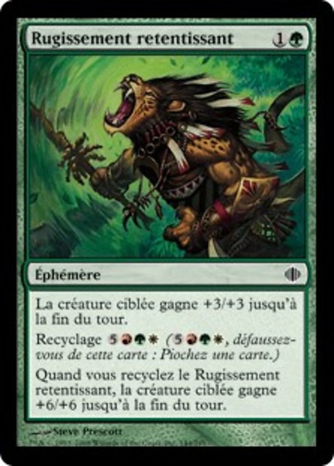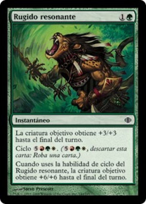 ![]() Variations— Parts— | Resounding RoarTarget creature gets +3/+3 until end of turn. Cycling When you cycle this card, target creature gets +6/+6 until end of turn.