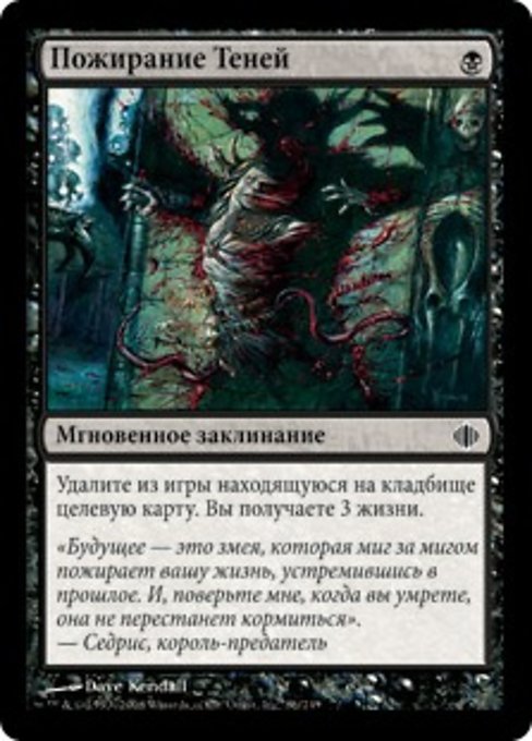 ![]() Variations— Parts— | ShadowfeedExile target card from a graveyard. You gain 3 life.