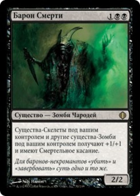 ![]() Variations— Parts— | Barone della Morte2 / 2 Le creature Scheletro che controlli e le altre creature Zombie che controlli prendono +1/+1 e hanno tocco letale.