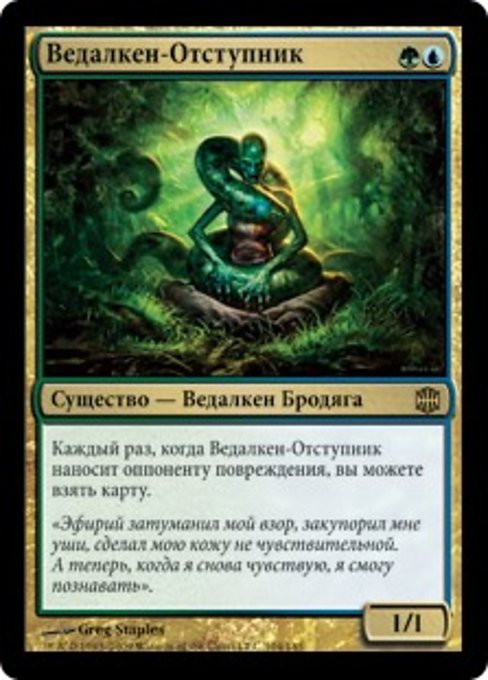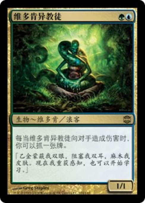 |  Variations— Parts— | Vedalken Heretic1 / 1 Whenever this creature deals damage to an opponent, you may draw a card.