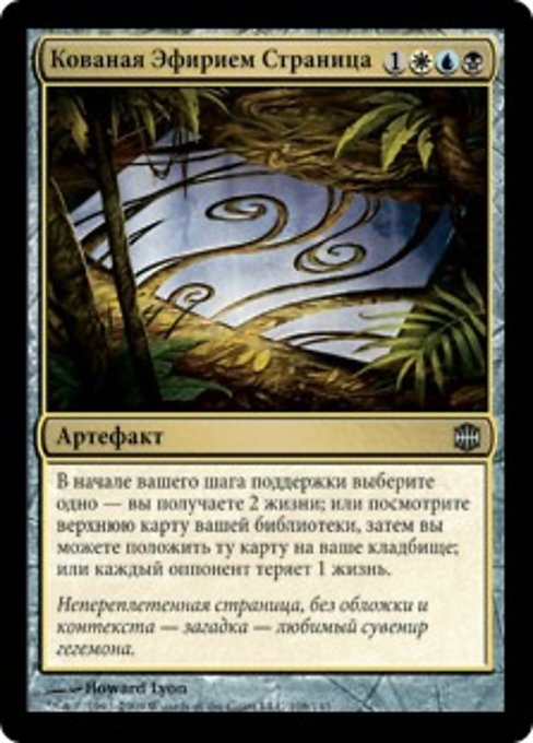 |  Variations— Parts— | Etherwrought PageAt the beginning of your upkeep, choose one — • You gain 2 life. • Surveil 1. (Look at the top card of your library. You may put that card into your graveyard.) • Each opponent loses 1 life.