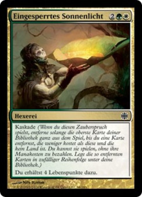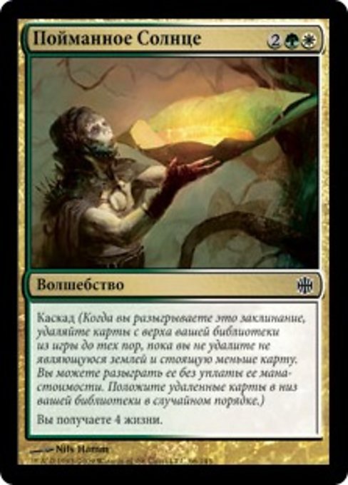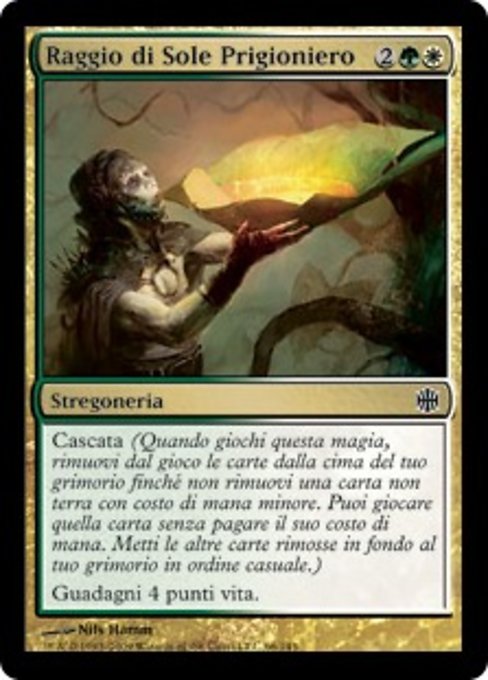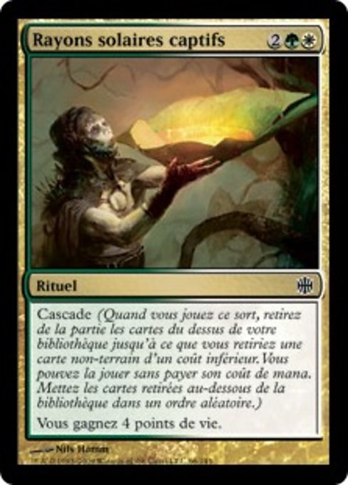 |  Variations— Parts— | Captured SunlightCascade (When you cast this spell, exile cards from the top of your library until you exile a nonland card that costs less. You may cast it without paying its mana cost. Put the exiled cards on the bottom in a random order.) You gain 4 life.