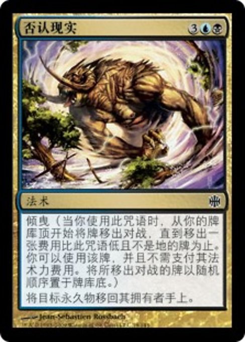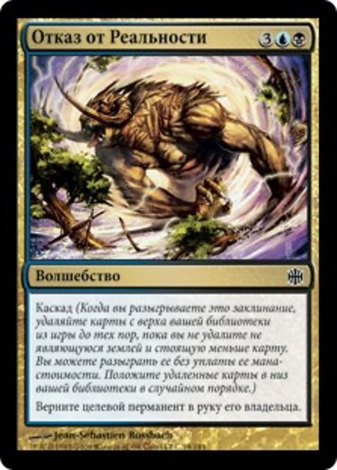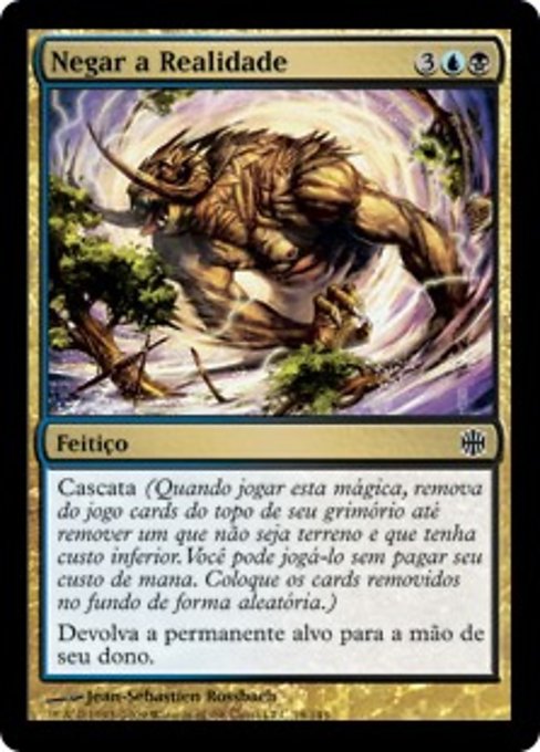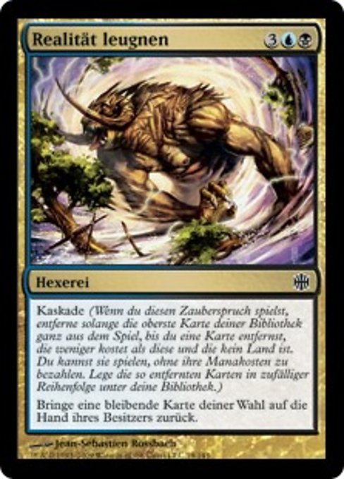 ![]() Variations— Parts— | Negar la realidadCascada. (Cuando juegues este hechizo, remueve del juego las primeras cartas de tu biblioteca hasta que remuevas una carta que no sea tierra que cueste menos. Puedes jugar esa carta sin pagar su coste de maná. Pon las cartas removidas en el fondo de tu biblioteca en un orden aleatorio.) Regresa el permanente objetivo a la mano de su propietario.