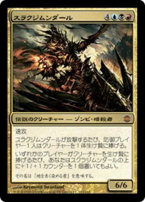 ![]() Variations— Parts— | Thraximundar6 / 6 Rapidità Ogniqualvolta Thraximundar attacca, il giocatore in difesa sacrifica una creatura. Ogniqualvolta un giocatore sacrifica una creatura, puoi mettere un segnalino +1/+1 su Thraximundar.