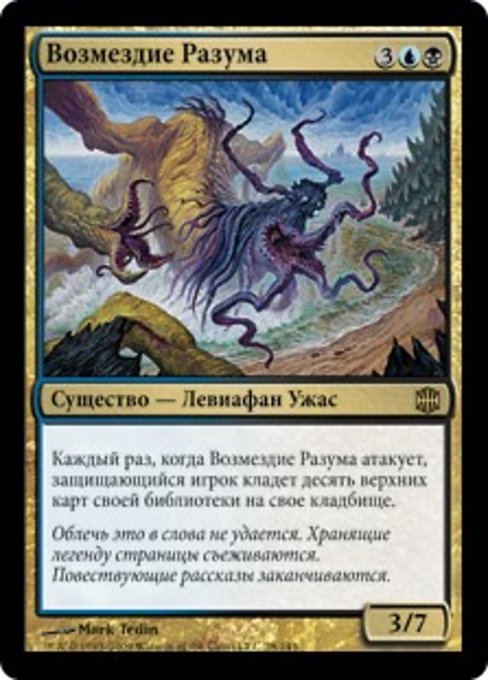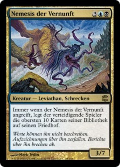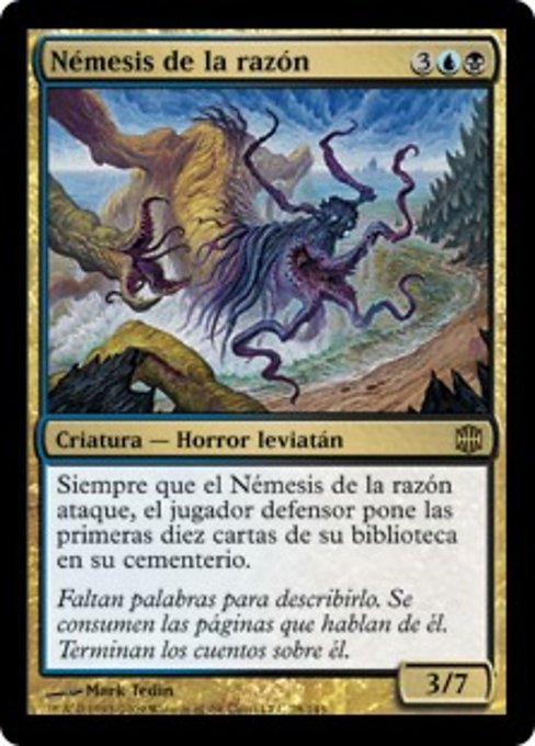 |  Variations— Parts— | Nemesi della Ragione3 / 7 Ogniqualvolta la Nemesi della Ragione attacca, il giocatore in difesa mette nel suo cimitero le prime dieci carte del suo grimorio.