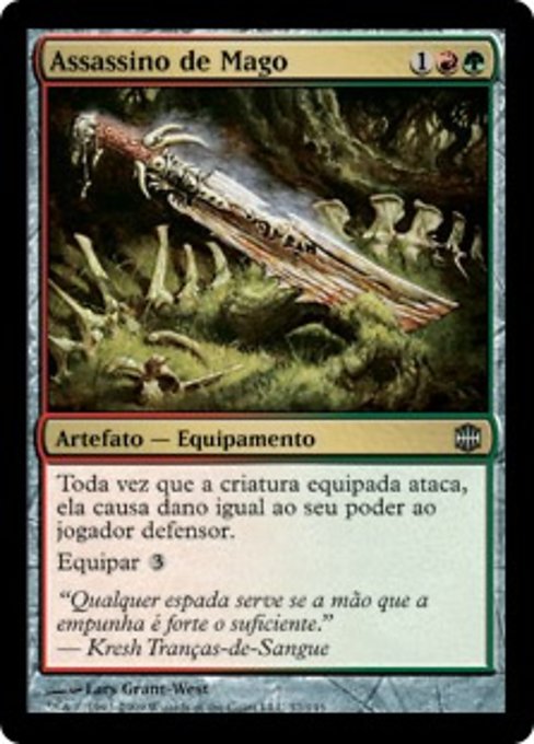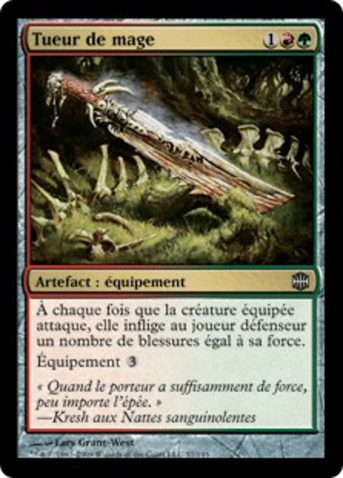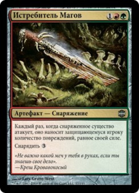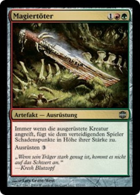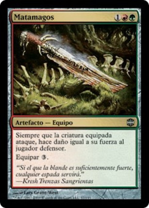 |  Variations— Parts— | AmmazzamaghiOgniqualvolta la creatura equipaggiata attacca, infligge danno pari alla sua forza al giocatore in difesa. Equipaggiare