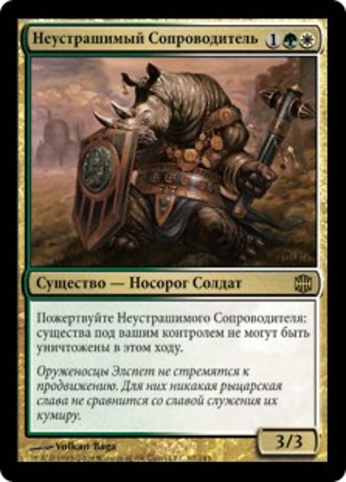 ![]() Variations— Parts— | Scorta Intrepida3 / 3 Sacrifica la Scorta Intrepida: Le creature che controlli sono indistruttibili in questo turno.