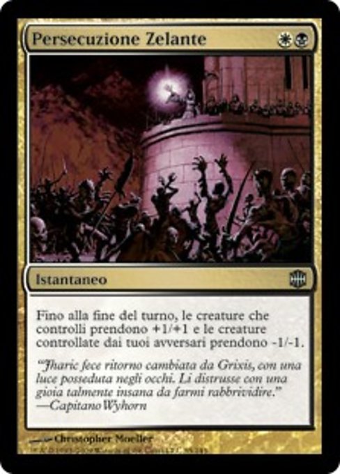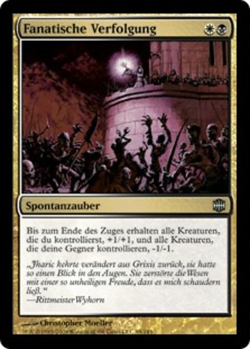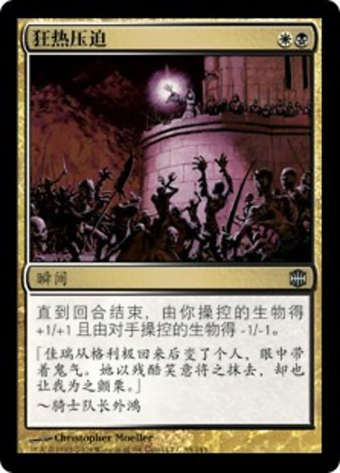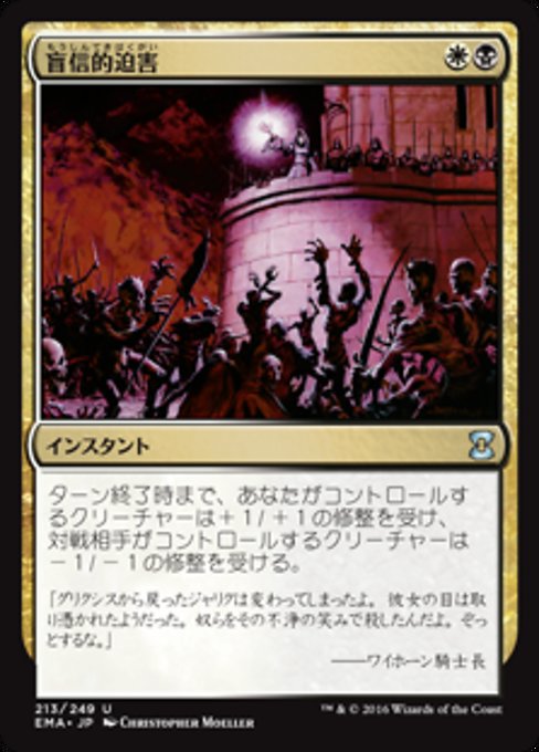 ![]() Variations— Parts— | 盲信的迫害ターン終了時まで、あなたがコントロールするクリーチャーは+1/+1の修整を受け、あなたの対戦相手がコントロールするクリーチャーは-1/-1の修整を受ける。