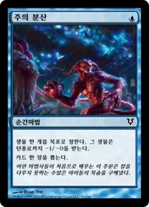 |  Variations— Parts— | 一瞬の散漫クリーチャー1体を対象とする。それはターン終了時まで-1/-0の修整を受ける。 カードを1枚引く。