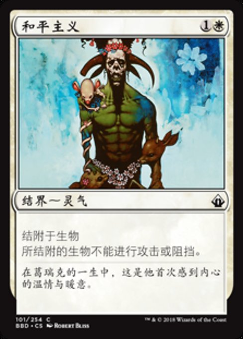 |  Variations— Parts— | 平和な心エンチャント(クリーチャー) エンチャントされているクリーチャーでは攻撃もブロックもできない。