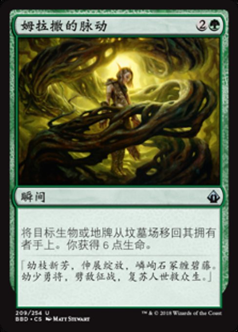 |  Variations— Parts— | ムラーサの胎動墓地からクリーチャーか土地であるカード1枚を対象とし、それをオーナーの手札に戻す。あなたは6点のライフを得る。