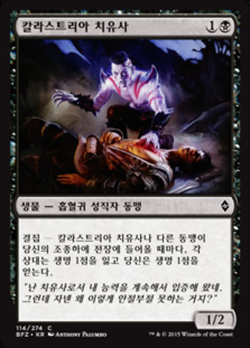 ![]() Variations— Parts— | Kalastria Healer1 / 2 Rally — Whenever this creature or another Ally you control enters, each opponent loses 1 life and you gain 1 life.