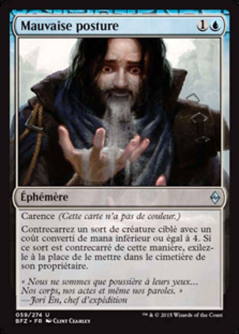 ![]() Variations— Parts—  | Horribly AwryDevoid (This card has no color.) Counter target creature spell with mana value 4 or less. If that spell is countered this way, exile it instead of putting it into its owner's graveyard.