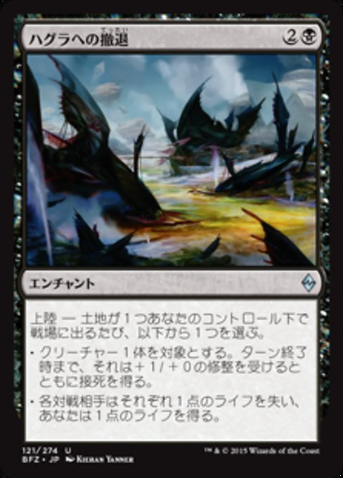 ![]() Variations— Parts— | Ritirata verso HagraTerraferma — Ogniqualvolta una terra entra nel campo di battaglia sotto il tuo controllo, scegli uno —• Una creatura bersaglio prende +1/+0 e ha tocco letale fino alla fine del turno.• Ogni avversario perde 1 punto vita e tu guadagni 1 punto vita.
