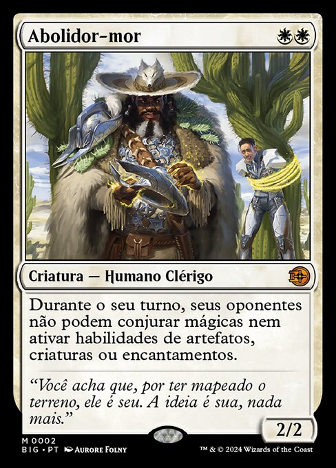 |  Variations : 2Parts— | Grand abolisseur2 / 2 Pendant votre tour, vos adversaires ne peuvent pas lancer de sorts ou activer des capacités d'artefacts, de créatures ou d'enchantements.