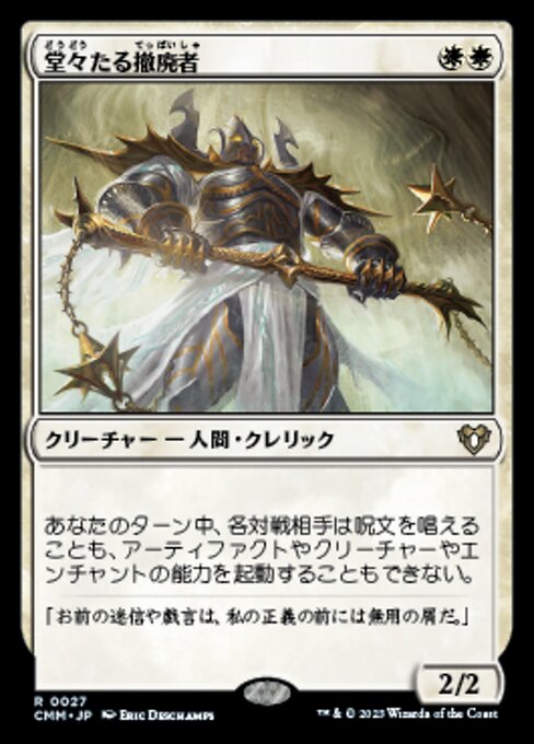 |  Variations : 2Parts— | 堂々たる撤廃者2 / 2 あなたのターンの間、各対戦相手は呪文を唱えることも、アーティファクトやクリーチャーやエンチャントの能力を起動することもできない。