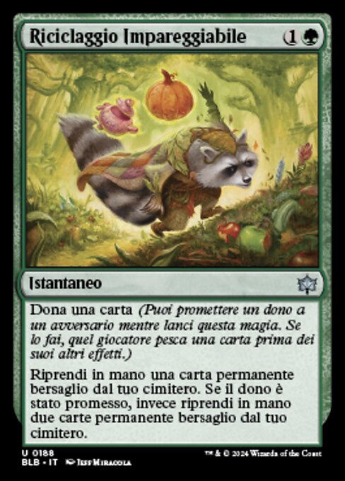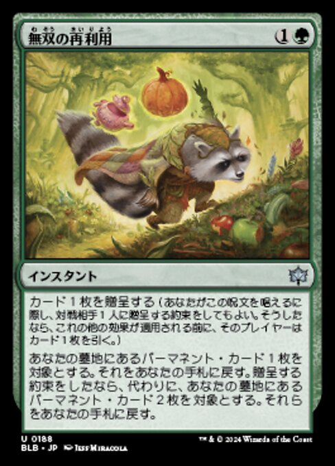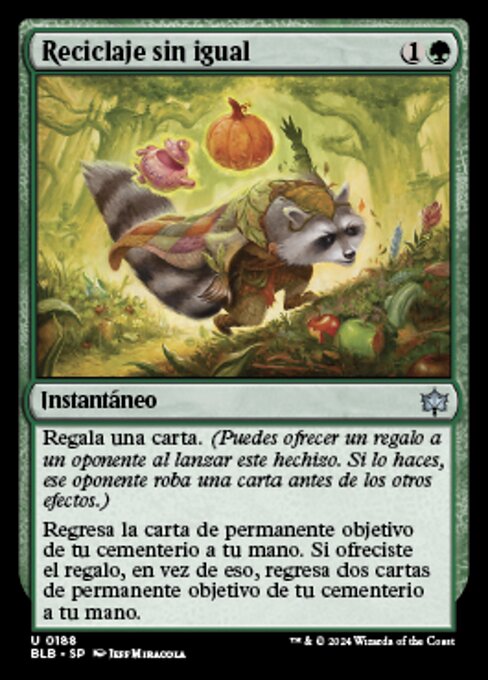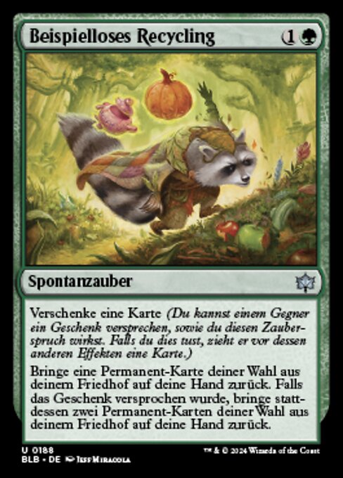 |  Variations— Parts— | Peerless RecyclingGift a card (You may promise an opponent a gift as you cast this spell. If you do, they draw a card before its other effects.) Return target permanent card from your graveyard to your hand. If the gift was promised, instead return two target permanent cards from your graveyard to your hand.